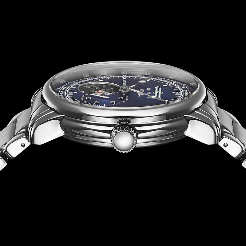 この時計は、当時の乗組員と乗客が見下ろした「Japan Sea」(=日本海)の深く美しいブルーをイメージして作られました。当時のエモーショナルでドラマティックな情景を、腕元で感じる腕時計です。
