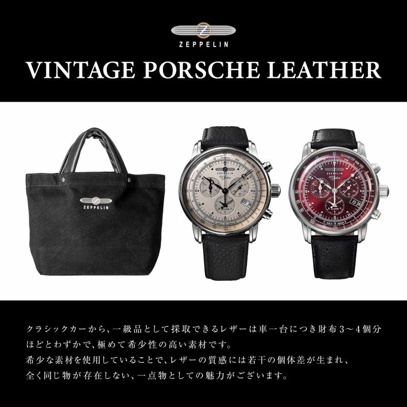 同じドイツを母国とする自動車ブランド、ポルシェの希少なヴィンテージレザーをストラップに使用した100本限定モデルです。