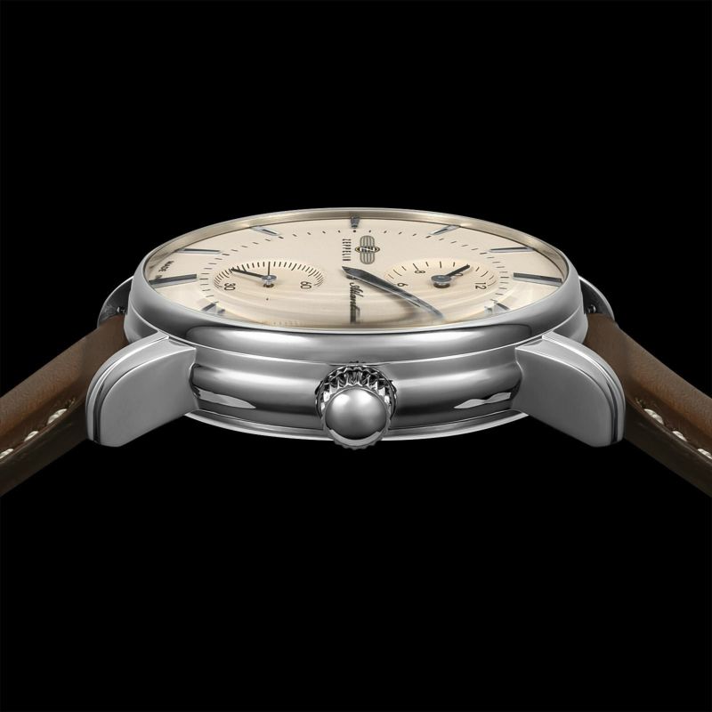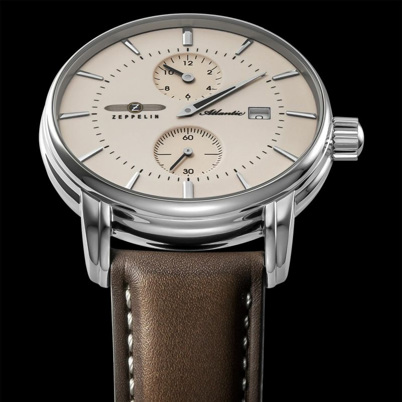 「ATLANTIC レギュレーター」 スイス製自動巻きムーブメント「Sellita SW266」を搭載。 時、分、秒をそれぞれ独立表示させた「レギュレーター」。 強固で透明度の高いサファイアクリスタルを採用。 暗闇で文字盤が光るダイヤル。 裏蓋はシースルー仕様。ムーブメントの動きを堪能できます。 ドイツのルーラ工場で自社生産されたハイエンドモデルです。