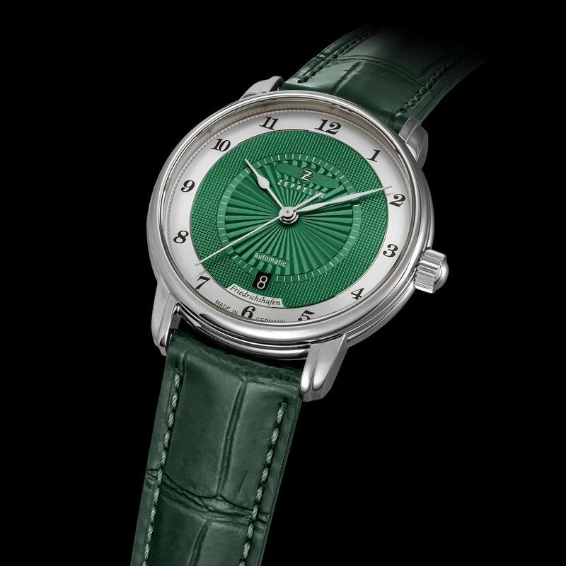 グリーンダイヤルと同色のレザーストラップが特徴的な「8556-2」は、40mmのステンレススチールケースに自動巻きムーブメントを搭載したクラシックなモデル。 サファイアクリスタルガラスと日常生活防水(5ATM)により、日常使いにも適しています。 エレガントなデザインと実用性を兼ね備えた一本です。