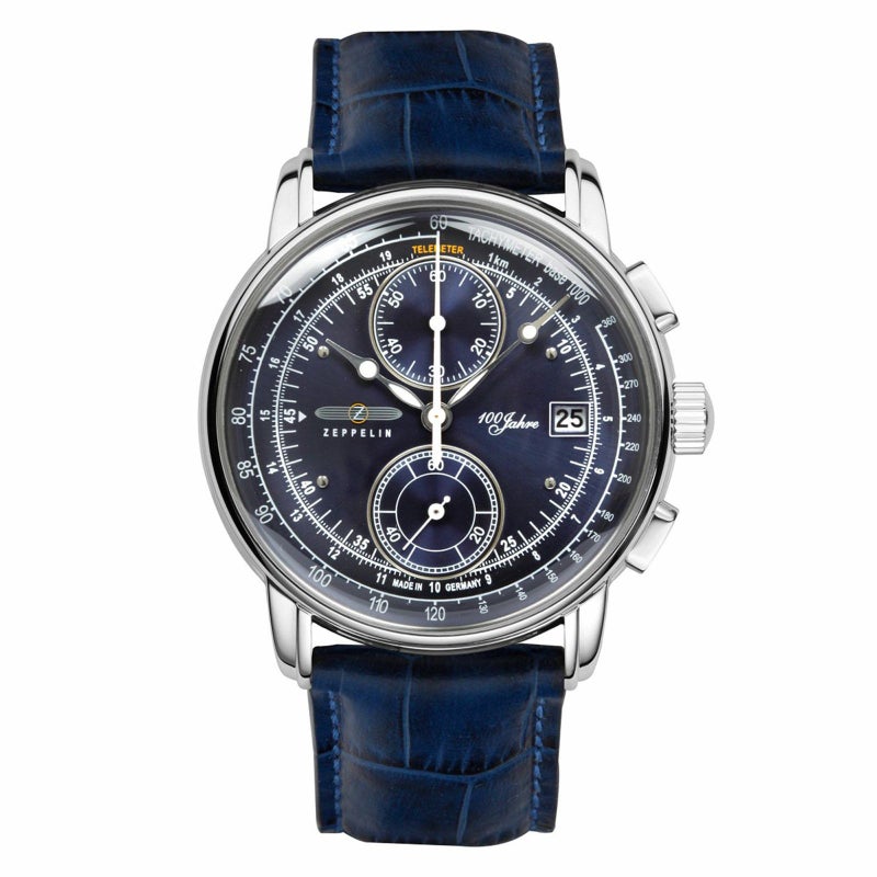 ZEPPELINの誕生100周年を記念して誕生したベストセラー『100周年記念シリーズ』。 飛行船の機体をデザインソースにした丸みを帯びたダイヤルやドーム型のガラスが特徴です。 ダイヤルにはドイツ語で「100周年」を意味する「100Jahre」の文字が入っています。 高機能で上品なデザインの『8670-3』は、60分計クロノグラフ搭載し、縦目のサブダイヤルとシックな色合いが、気品漂う魅力的な腕元を演出します。 *こちらはベルトが長めの商品になります(腕周り最小16.5cm 最大20.5cm)。ご購入前にご確認のほどお願いいたします。