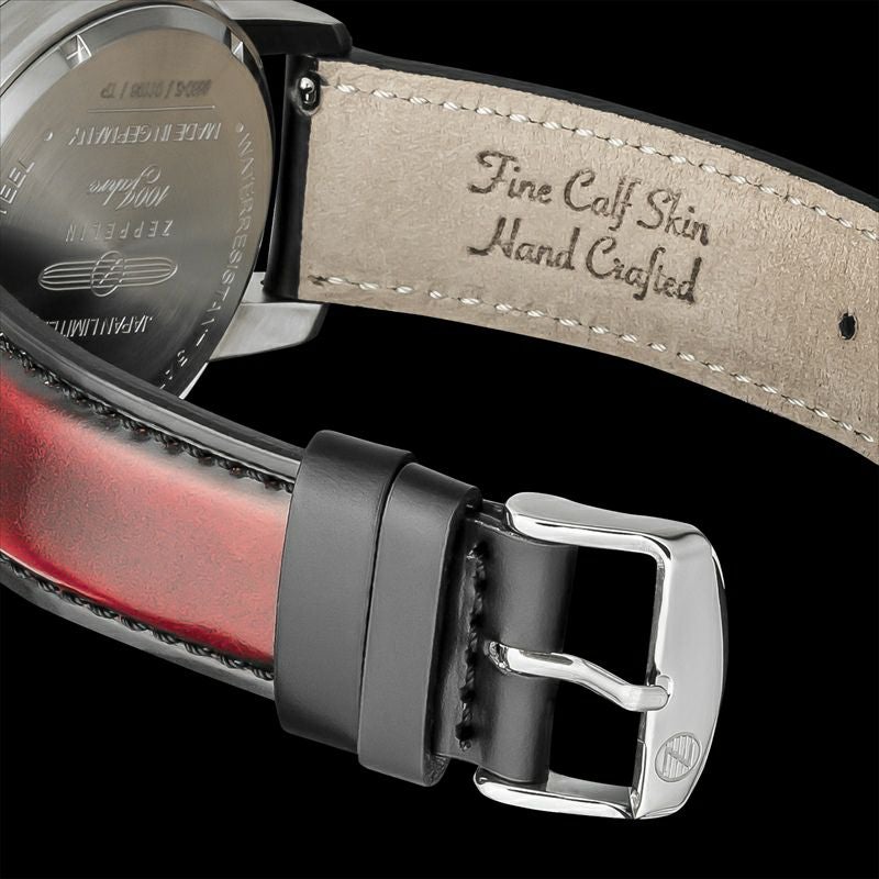 本製品は、夕日に照らされた"旅路の飛行船"を表現した、歴史のロマンに浸れるエモーショナルな日本限定セットです。ヴィンテージ感溢れるグラデーションが美しいスムースレザーに加え、ブラックの型押しレザーが付属。レバーで簡単に付け替えられ、日々の気分やスタイリングに合わせてコディネートいただけます。
