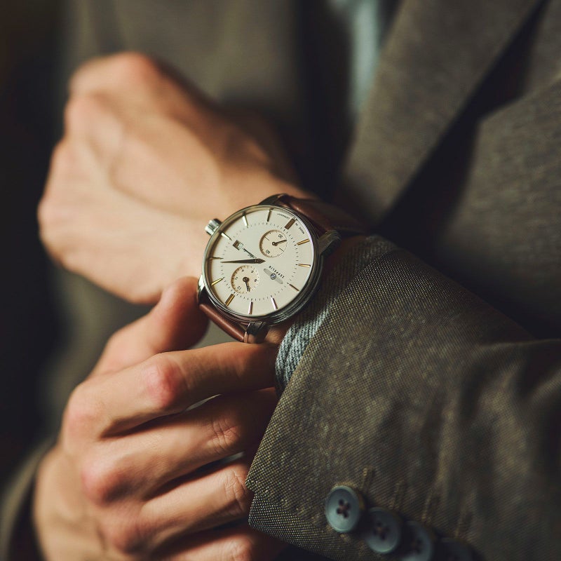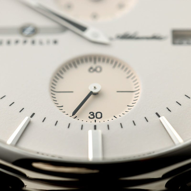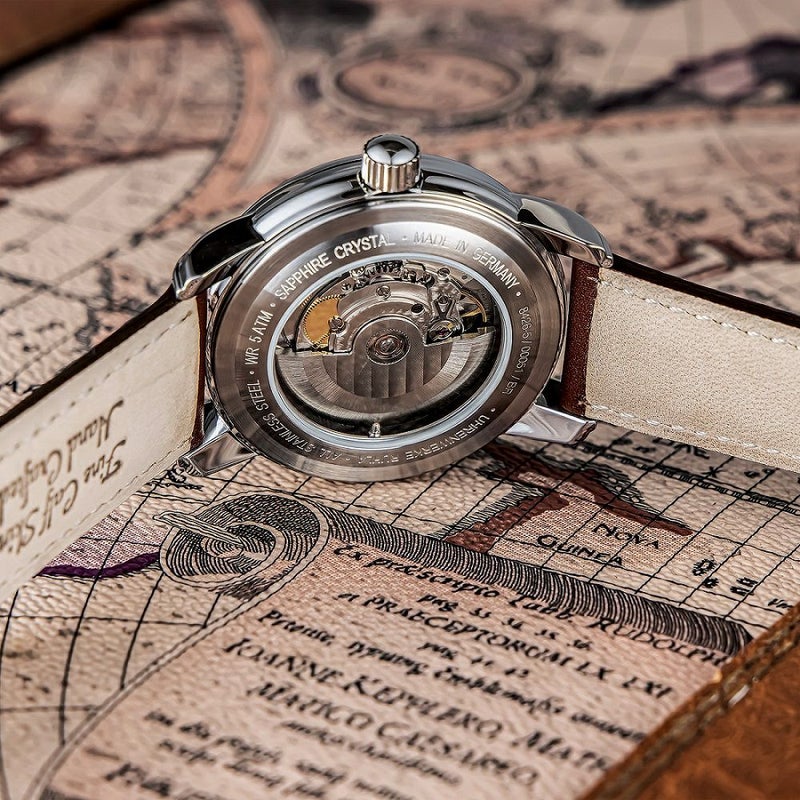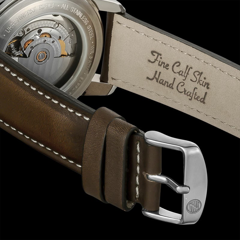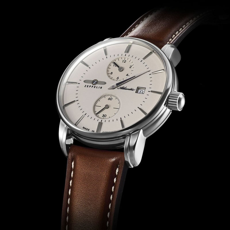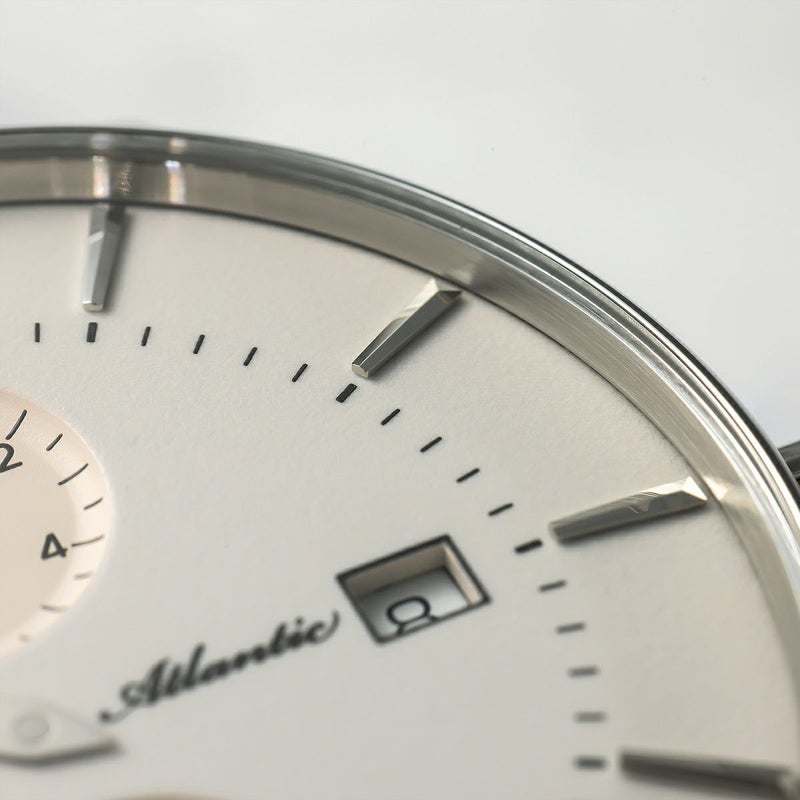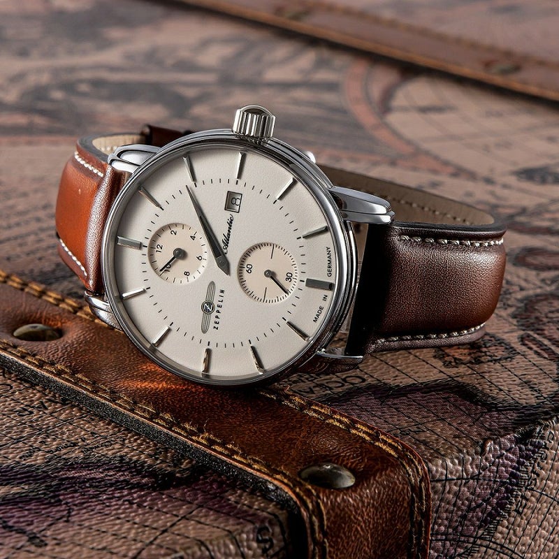 「ATLANTIC レギュレーター」 スイス製自動巻きムーブメント「Sellita SW266」を搭載。 時、分、秒をそれぞれ独立表示させた「レギュレーター」。 強固で透明度の高いサファイアクリスタルを採用。 暗闇で文字盤が光るダイヤル。 裏蓋はシースルー仕様。ムーブメントの動きを堪能できます。 ドイツのルーラ工場で自社生産されたハイエンドモデルです。