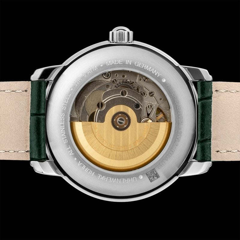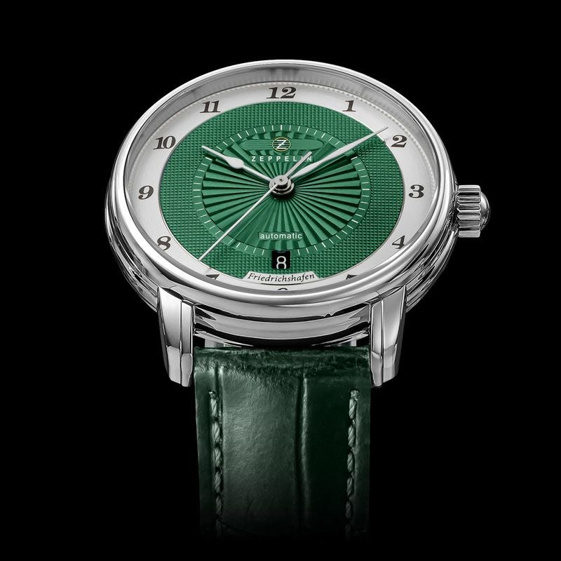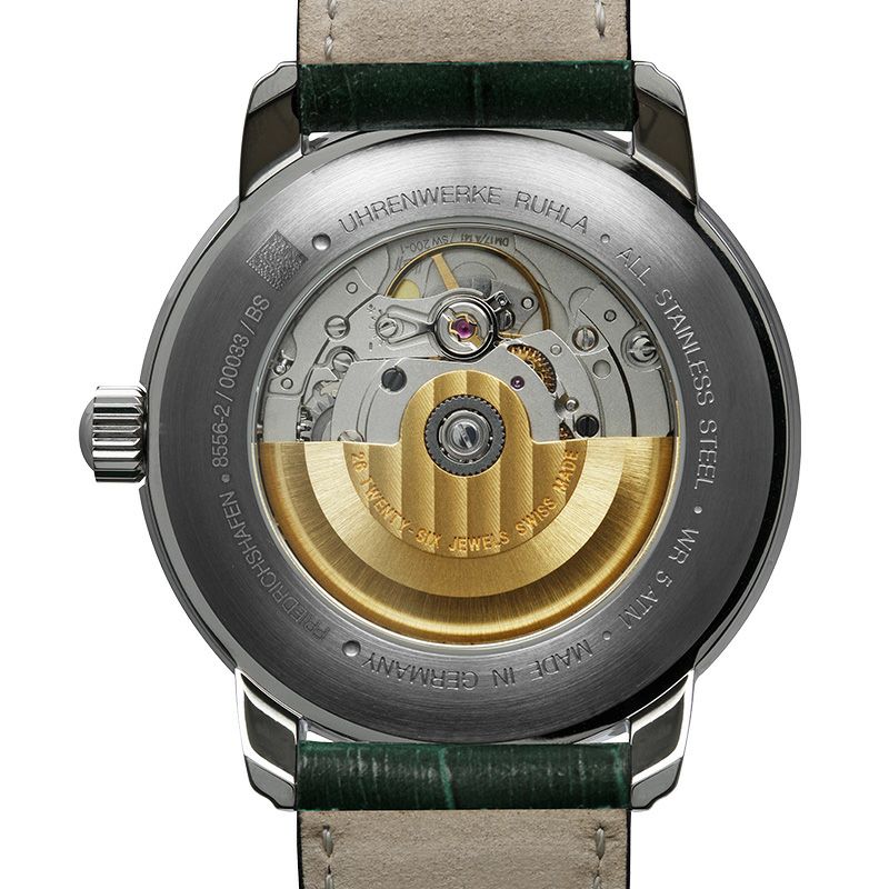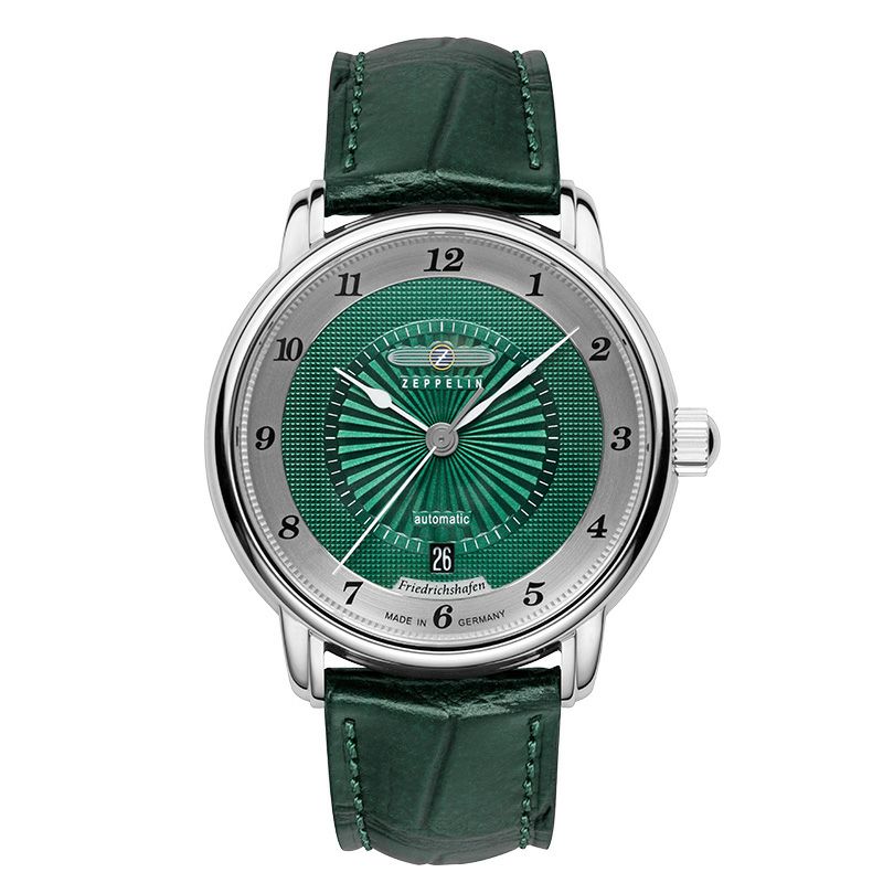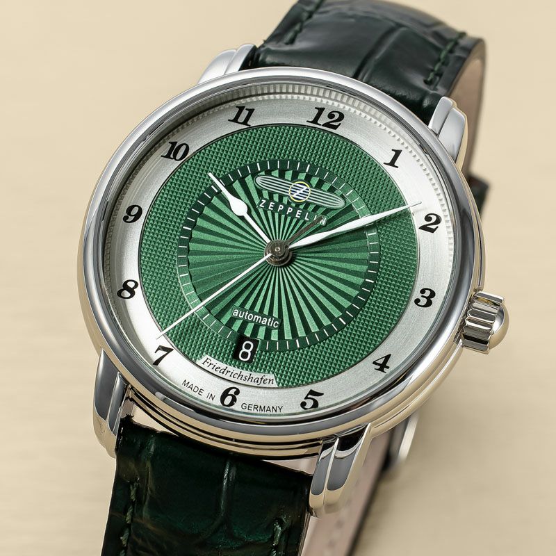 グリーンダイヤルと同色のレザーストラップが特徴的な「8556-2」は、40mmのステンレススチールケースに自動巻きムーブメントを搭載したクラシックなモデル。 サファイアクリスタルガラスと日常生活防水(5ATM)により、日常使いにも適しています。 エレガントなデザインと実用性を兼ね備えた一本です。
