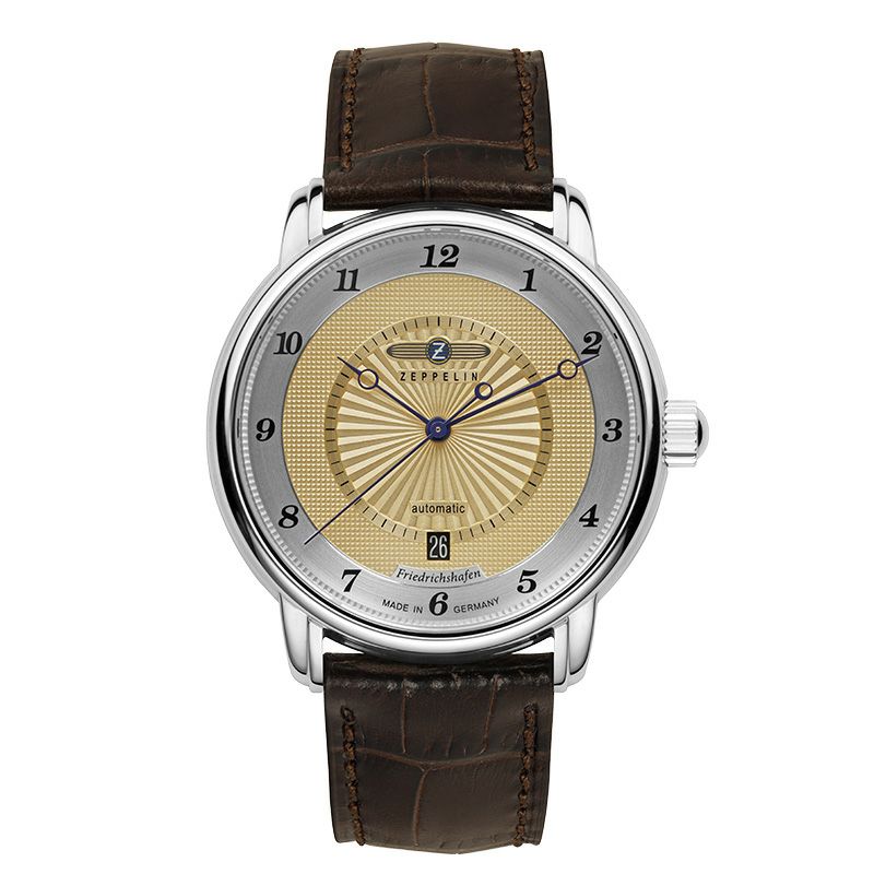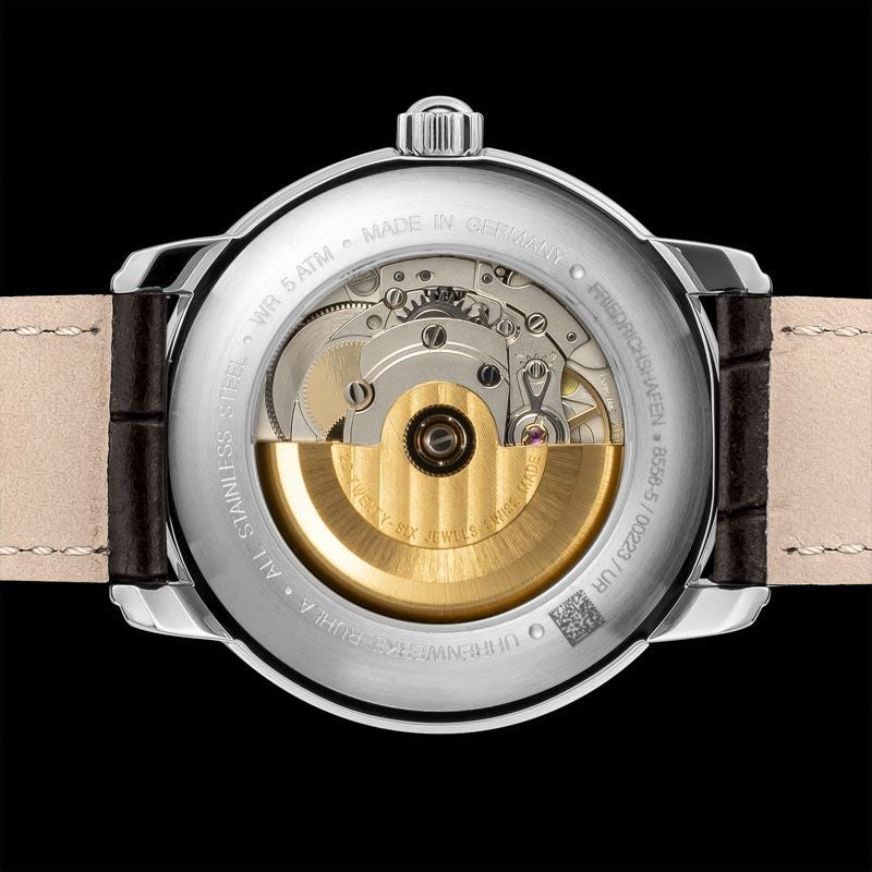 シャンパンゴールドのダイヤルにブラウンレザーストラップを組み合わせた「8556-5」は、エレガントな雰囲気を纏う自動巻き時計。 サファイアクリスタルガラスや日常生活防水(5ATM)を備え、実用性も兼ね備えたモデル。 40mmケースが手元を上品に演出します。