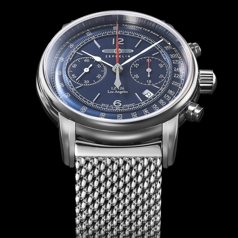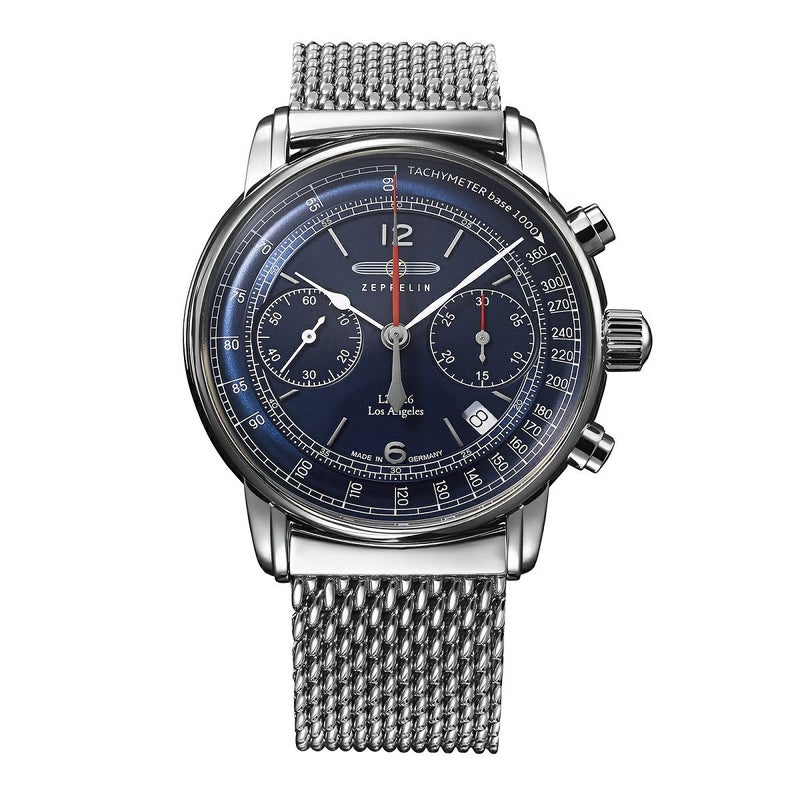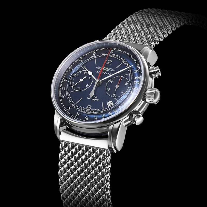 ドイツからアメリカに譲渡された飛行船“LZ126ロサンゼルス号”をモチーフとした「LZ126ロサンゼルス」シリーズに、初となるスイス製機械式ムーブメントを搭載したプレミアムエディション[8614M-3]が登場。