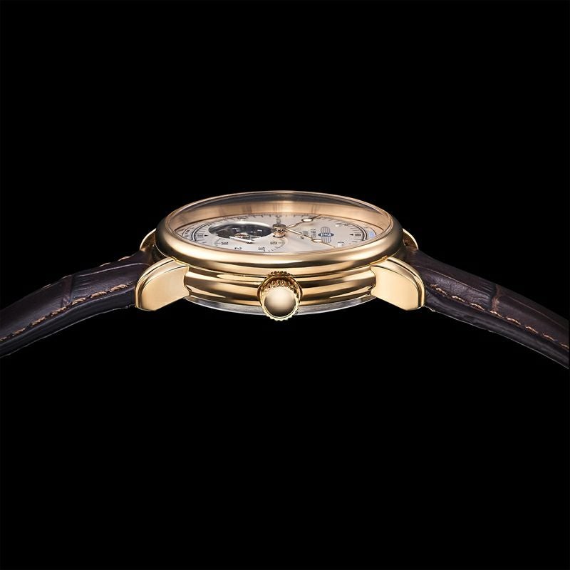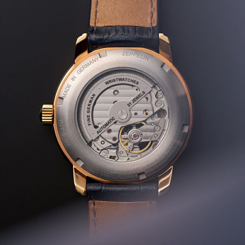 ツェッペリンの新作「100周年記念シリーズ オープンハート オートマティック 7662-8」は、こうした1930年代の空の旅の世界観を表現しました。ゴールドカラーのケースには、かつて空を旅した人々の品格と、時代を超えて受け継がれるクラシックな美意識が息づいています。