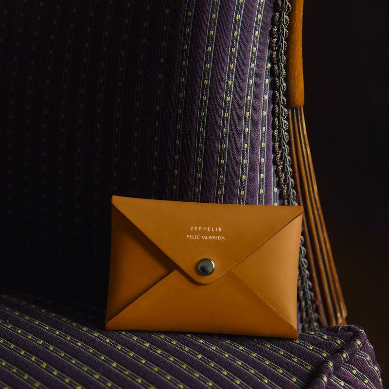 PELLE MORBIDA製のエンベロープポーチを付属。一枚革を折りたたんで仕立てられたミニマルなデザインとなりました。贅沢に裏地にもレザーを用い、名刺やクレジットカードをリッチに収納できる仕様です。これさえあれば、旅に必要なのは時計とスマートフォン、そしてこのエンベローブポーチだけ。無駄を削ぎ落とした上質さは、大人の旅をより軽やかでラグジュアリーなものにしてくれます。