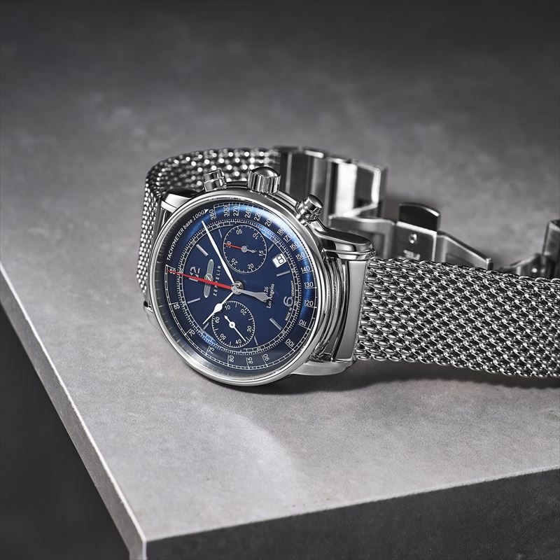 ドイツからアメリカに譲渡された飛行船“LZ126ロサンゼルス号”をモチーフとした「LZ126ロサンゼルス」シリーズに、初となるスイス製機械式ムーブメントを搭載したプレミアムエディション[8614M-3]が登場。