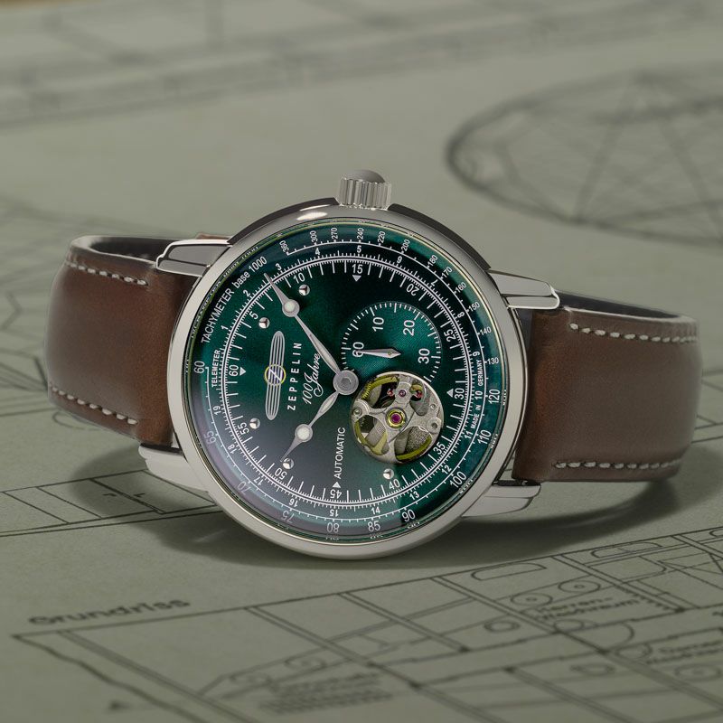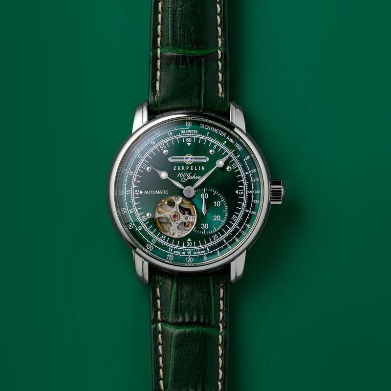 ドイツ飛行船「ZEPPELIN」の生誕100周年を記念したベストセラーシリーズにおいて、メカニカルムーブメントならではの魅力を伝える「オープンハートオートマティック」。Made in Germanyならでは厳しい品質とツェッペリンに宿るクラフツマンシップを体現した人気モデルです。