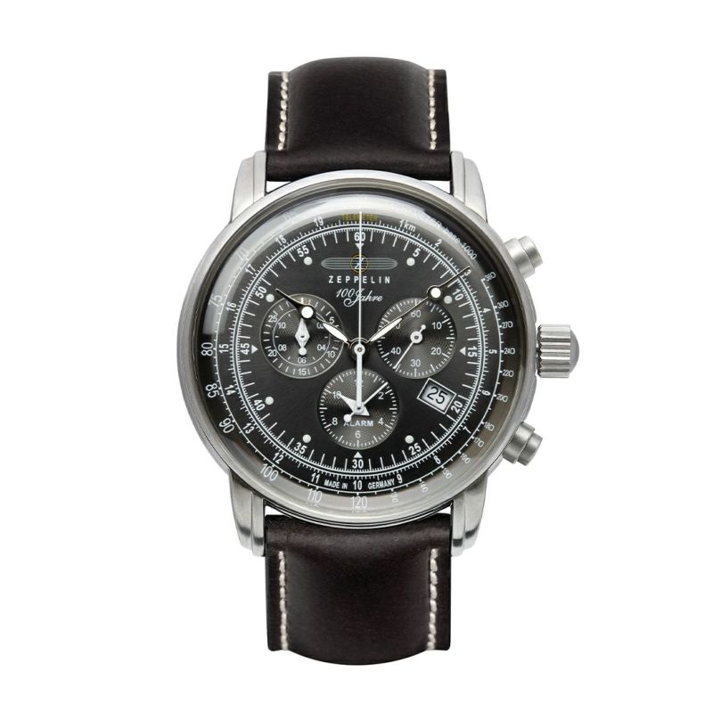 ドイツの歴史的飛行船ZEPPELINの100周年を記念したベストセラー『100周年記念シリーズ』。 飛行船の機体をデザインソースに、丸みを帯びたケース、ボンベダイヤルやドーム型のガラスで立体的に設計されています。 ダイヤルにはドイツ語で「100周年」を意味する「100Jahre」がデザインされています。 『100周年記念シリーズ クロノグラフアラーム』は、12時間クロノグラフ、12時間アラーム、速度を測るタキメーター、距離を測るテレメーターを搭載。充実の機能を搭載したベストセラーモデルです。