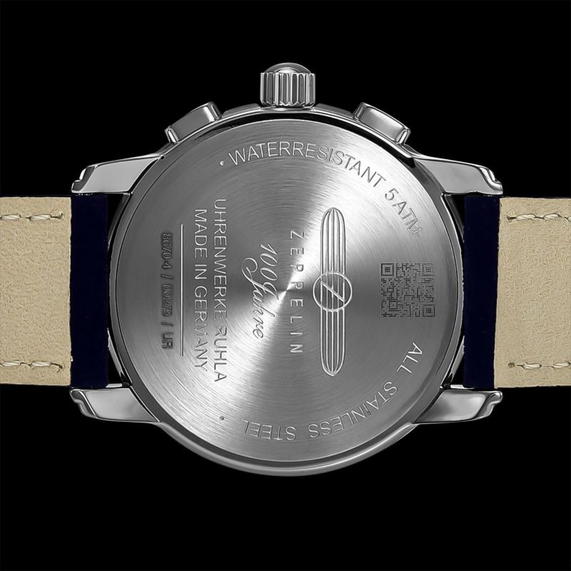 ZEPPELIN飛行船をモチーフにした、縦目のクロノグラフ。 外周にレール上のタキメーター(速度計)、3時位置にデイト(日付)表示を搭載。 また、ドームガラス、ボンベダイヤル、飛行船型ケース、三層構造の湾曲パーツが相乗効果を生み、環境により異なる立体的表情を堪能できます。