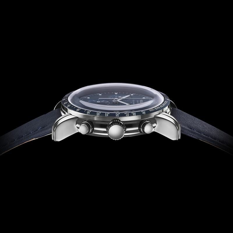ベースとなるモデルは、2022年の発売以来高い人気を誇る「100周年記念シリーズ 日本限定クロノグラフ」。美しく湾曲したボンベダイヤル、ドームガラス、飛行船型ケースからは優雅な雰囲気が漂います。