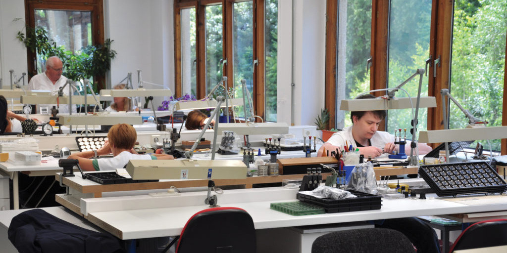 製品はすべてドイツ時計製造の象徴、ルーラの自社工場で組立。製造拠点となるのは、「ドイツの緑の心臓」とも言われるテューリンゲン州のいち都市、ルーラにある自社工場です。