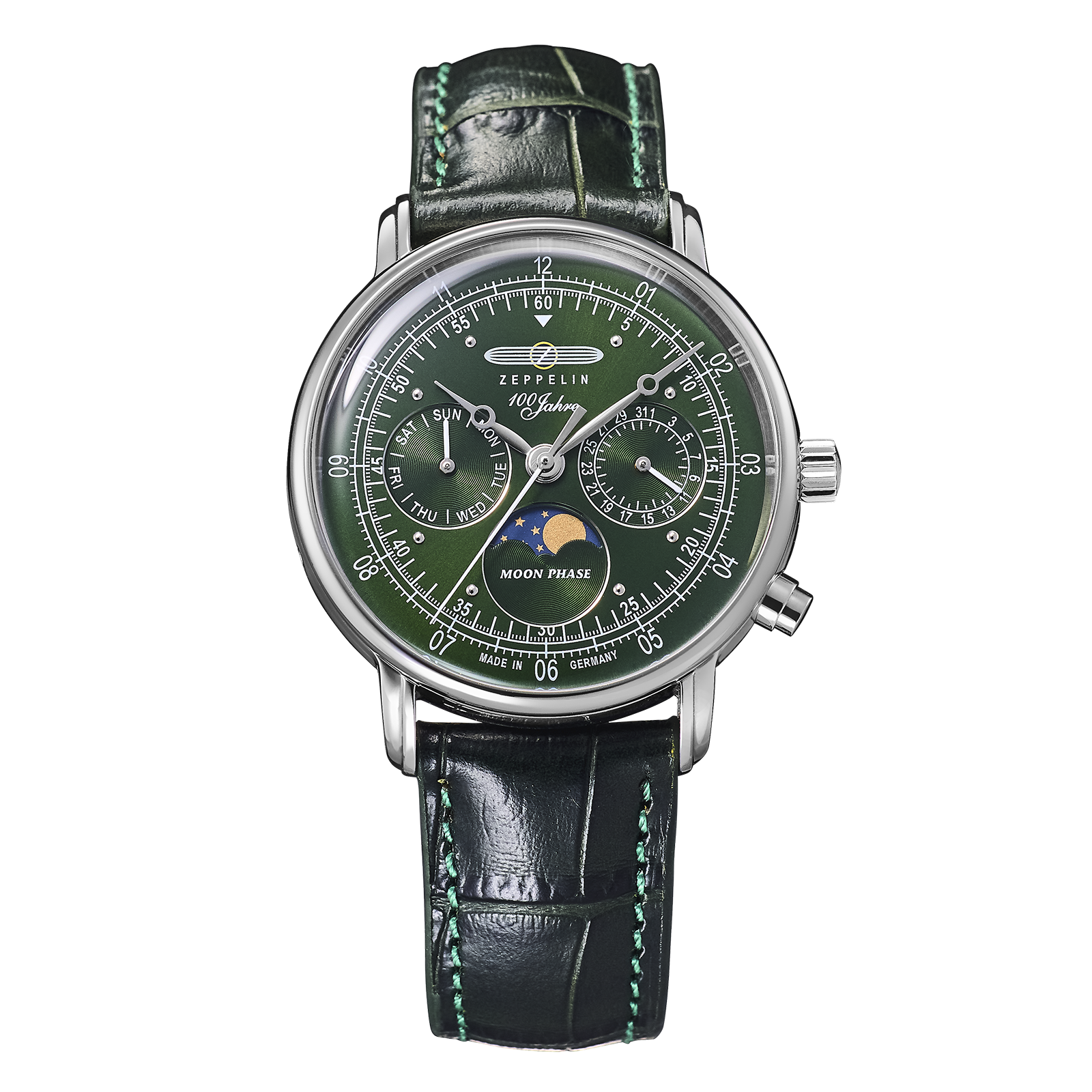男女問わず多くの人に自然にフィットするサイズ感は、クラシックウォッチのひとつの理想です。36mmへと巧みにダウンサイジングした「100周年記念シリーズ 36mm ムーンフェイズ」は、流行に左右されないタイムレスな価値を伝えようとする本シリーズの本質を捉えており、ツェッペリンの美意識をより豊かに体現しています。